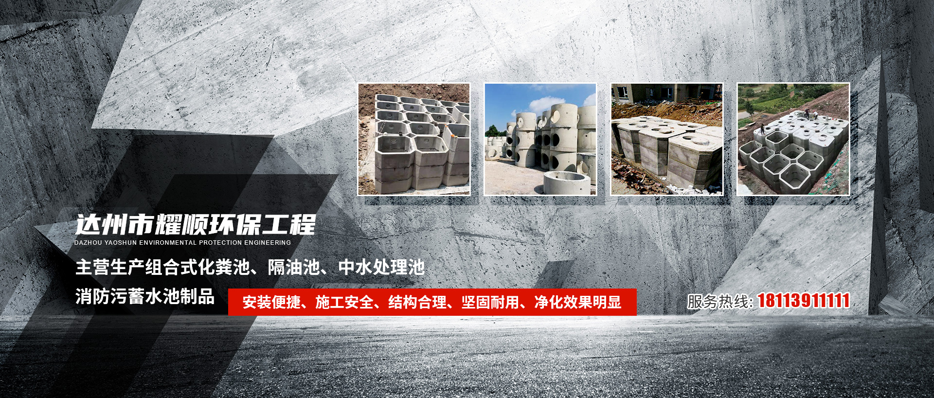 達州市耀順環(huán)保工程有限公司位于四川東北部、達州市中部通川區(qū)。本公司采用全自動模壓生產(chǎn)線,擁有專業(yè)的生產(chǎn)技術(shù)和設(shè)備,同時擁有一支專業(yè)的施工隊伍。本公司堅持質(zhì)量第一、互惠發(fā)展,讓您的居住環(huán)境更美、更舒適,是我們工人的宗旨。本公司愿與廣大建筑同仁一道,為美化城市作出貢獻。我公司現(xiàn)生產(chǎn)組合式化糞池、隔油池、中水處理池、消防污蓄水池制品。我們的產(chǎn)品在建筑工程中不斷接受檢驗,具有安裝便捷、施工安全、用時短、結(jié)構(gòu)合理、堅固耐用、抗?jié)B性能好、凈化效果明顯、經(jīng)濟合理的優(yōu)特點。...